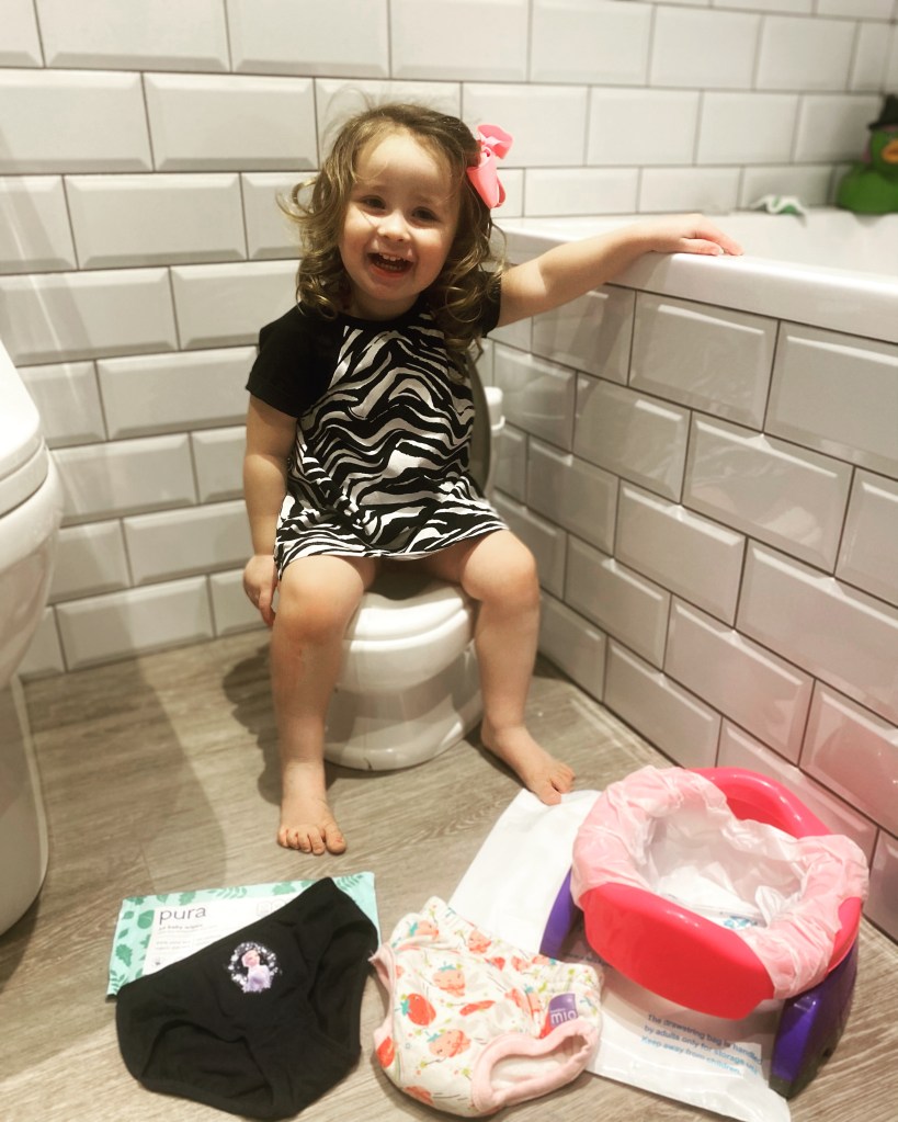 We’ve had a potty toilet for several months to make her aware of it and spoke about doing wees and poos in it to introduce the idea in a no pressure way.
